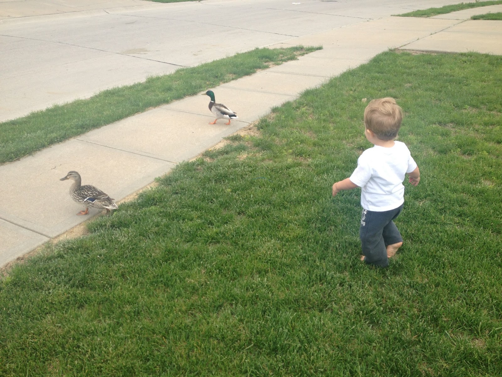 A few others: choco meelt (milk), Mai (Maya our puggle), boo boo, bat, heet (hit), choo choo, baby (to every kid passing by), side (slide), oh man, ou-sigh (spending a tons of time outdoors these days), poo poo/pee pee (generally in the correct context), swing, airplane, helicopter, ice cream, book. Seriously, he just picks up words we say and seems to easily learn how to use them correctly. He has also started catching onto Nick and I using our real names and tends to sneak them in when he wants our attention extra bad.